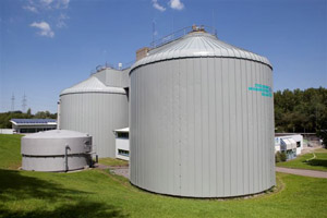 Der im Faulbehälter ausgefaulte Schlamm (Wassergehalt 97%) wird durch einen Entgasungsbehälter geführt. Das im Behälter vorherrschende